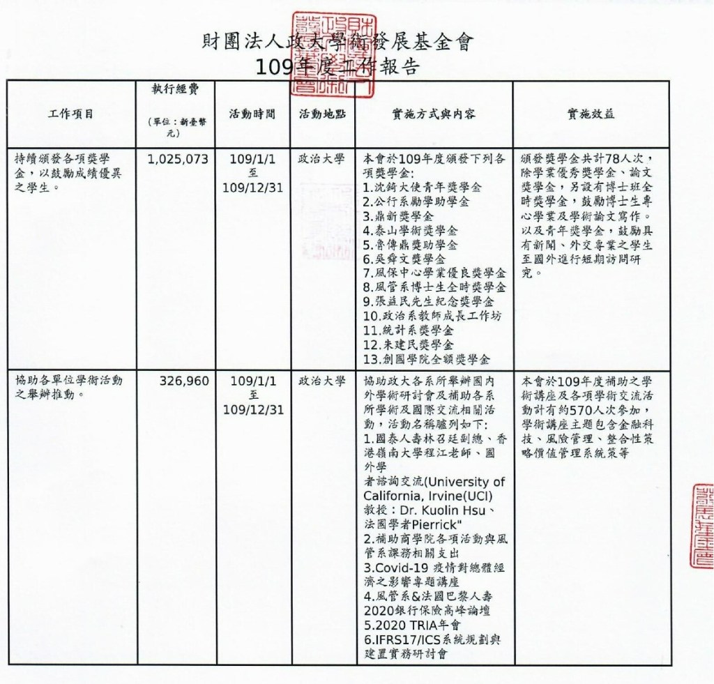 > 工作報告 > 109年度工作報告