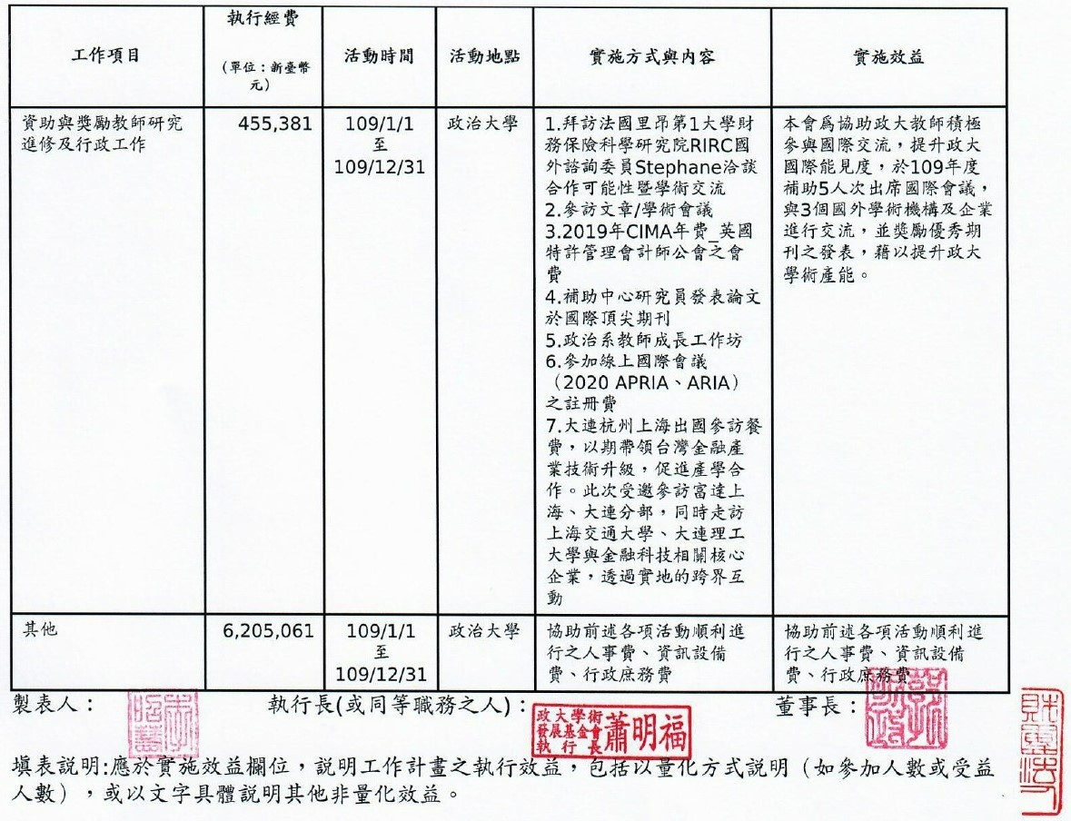 政大學術發展基金會系所指定孳息
