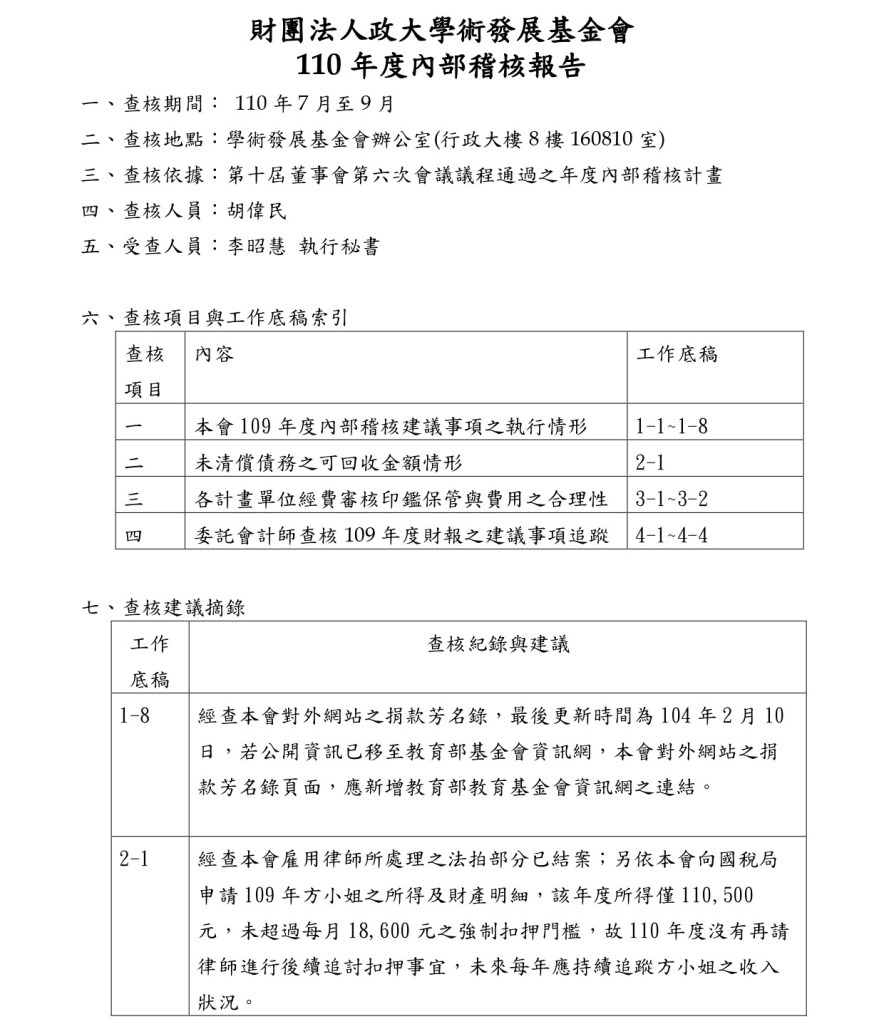 > 稽核報告 > 110年度稽核報告