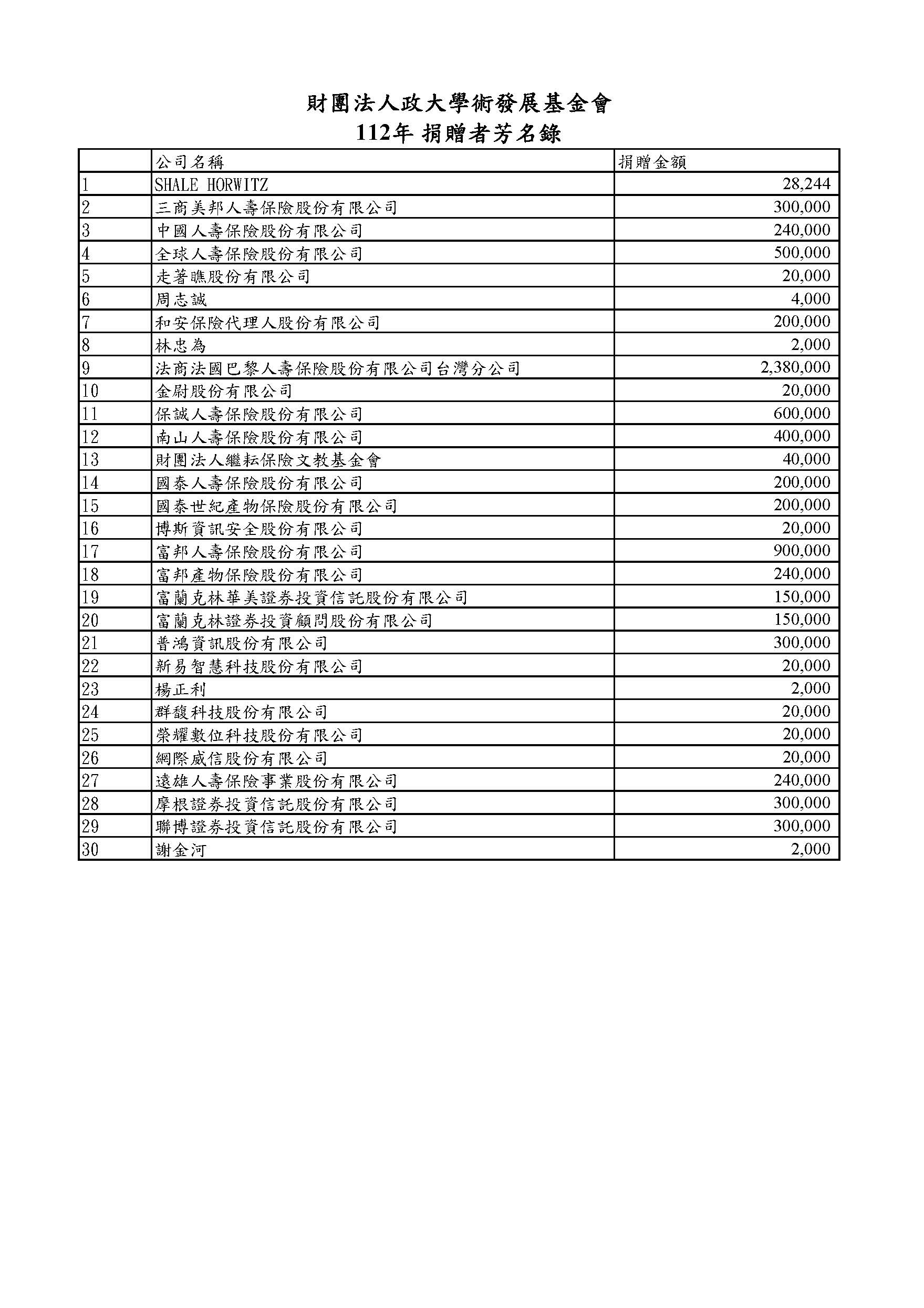> 捐款芳名錄 > 112年度捐贈芳名錄