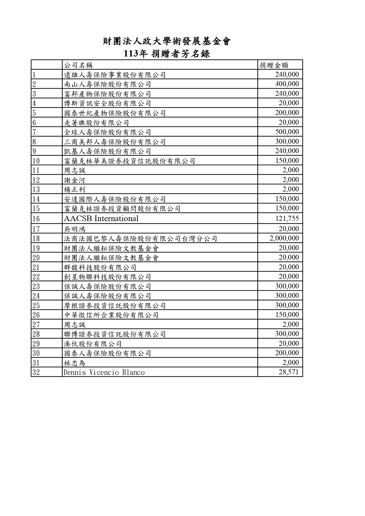 > 捐款芳名錄 > 113年度捐贈芳名錄