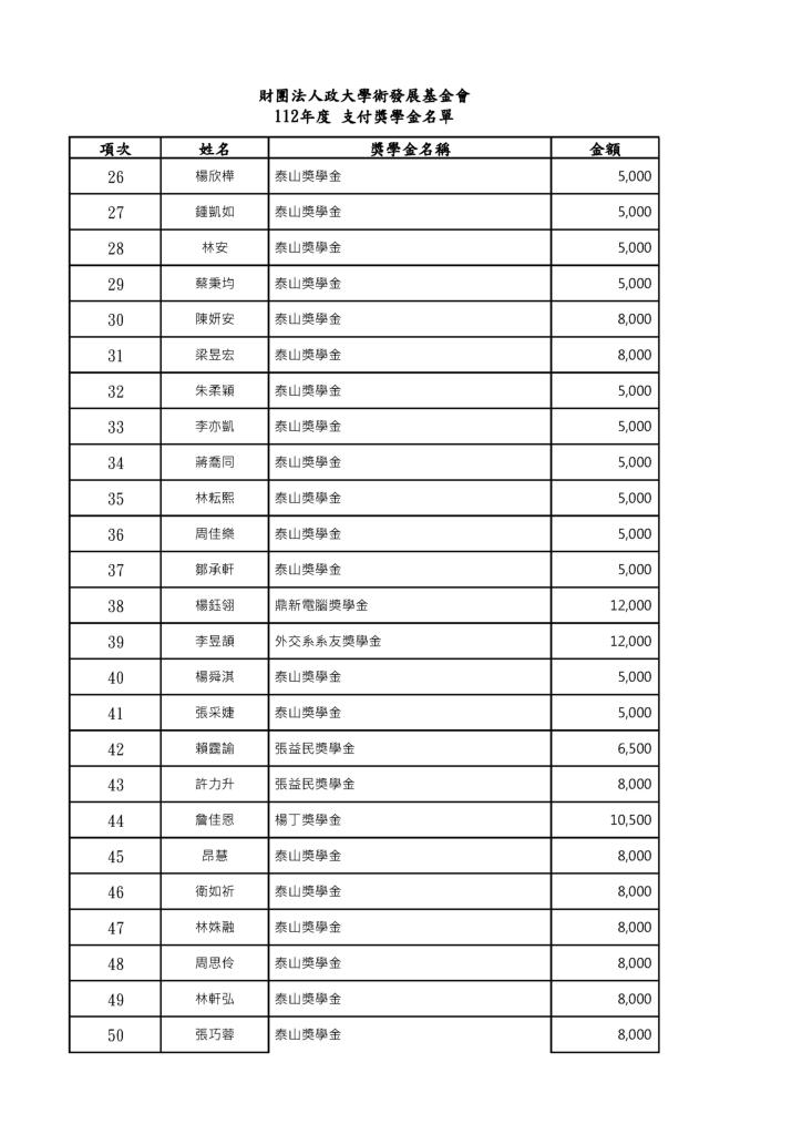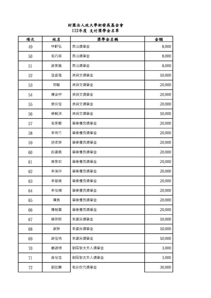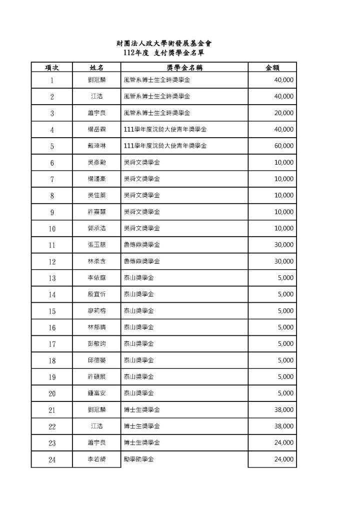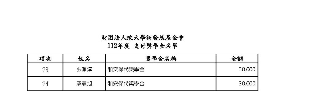 > 獎學金歷年得獎名單 > 112年度獎學金得獎名單